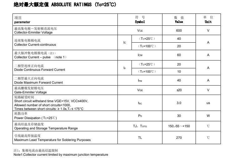 當(dāng)然,在應(yīng)用中,我們電機(jī)驅(qū)動(dòng)研發(fā)工程師一定要了解這款優(yōu)質(zhì)FHF20T60A國(guó)產(chǎn)IGBT單管的詳細(xì)參數(shù):其具有20A, 600V, VCEsat典型值:1.49V-typ ,電機(jī)驅(qū)動(dòng)電路IGBT,NCE20TD60BF代換型號(hào)<1.7V;ID (Tc=100℃):20A;BVCES:600V;IF(A)(Tc=25℃):20A;IF(A)(Tc=100℃):10A。